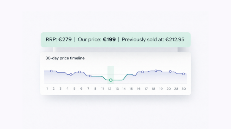 3. Separate RRP (Recommended Retail Price) display from discount calculation. You can still show the manufacturer’s RRP to give customers context. But the percentage discount and the crossed-out “was” price must use your own lowest price from the past 30 days. Label it clearly: “RRP: €279. Our price: €199. Previously sold at: €212.95.” Transparent labeling protects you legally and builds trust.