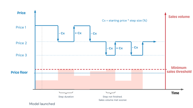 If a product reaches its minimum sales count before the jump period ends, the model doesn't wait. The price is increased to capture more margin while demand is hot.